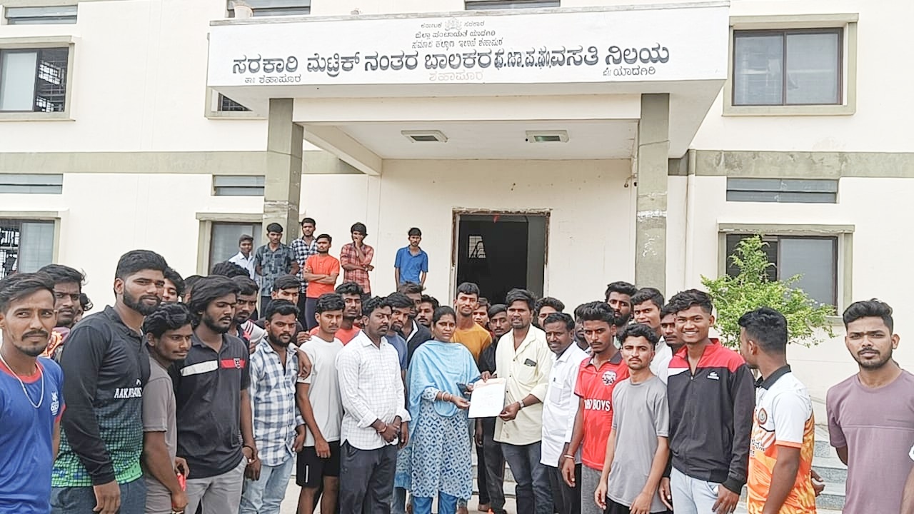 ಯಾಗಿದೆ. ಪ್ರಸ್ತುತ ಡೆಂಘೀ ಜ್ವರದ ಹಾವಳಿ ಹೆಚ್ಚಾಗಿರುವುದರಿಂದ ರಾತ್ರಿ ಸೊಳ್ಳೆ ಕಾಟಗಳ ಕಾಟ. ಇಲ್ಲಿನ ಶೌಚಾಲಯ ಮತ್ತು ಸ್ನಾನದ ಕೋಣೆಗಳು ಸ್ವಚ್ಛತೆ ಇಲ್ಲದೆ ಇರುವುದು, ಕೋಣೆಗಳ ಬಾಗಿಲು ಮತ್ತು ಕಿಟಕಿಗಳು ಮುರಿದಿರುವುದು ಸೇರಿದಂತೆ ಇತರ ಸಮಸ್ಯೆಗಳ ಬಗ್ಗೆ ತಿಳಿಸಿದರು. ಸುಮಾರು ತಿಂಗಳುಗಳಿಂದ ತಾಲೂಕು ಸಮಾಜ ಕಲ್ಯಾಣ ಅಧಿಕಾರಿ ರಾಹುತಪ್ಪನವರಿಗೆ ಹೇಳಿದ್ದರೂ ಕೂಡ ಸ್ಪಂದಿಸಿಲ್ಲ. ಕೂಡಲೇ ನಮ್ಮ ಬೇಡಿಕೆಗಳನ್ನು ಈಡೇರಿಸಬೇಕು. ನಮಗೆ ಸ್ಪಂದಿಸದ ತಾಲೂಕು ಅಧಿಕಾರಿಯನ್ನು ಅಮಾನತು ಮಾಡಬೇಕೆಂದು ಜಿಲ್ಲಾ ಸಮಾಜ ಕಲ್ಯಾಣ ಅಧಿಕಾರಿಗಳಿಗೆ ವಿದ್ಯಾರ್ಥಿಗಳು ಮನವಿ ಮಾಡಿದರು.ಸರ್ ಎಂ ವಿಶ್ವೇಶ್ವರಯ್ಯ ಕಟ್ಟಡ ಕಾರ್ಮಿಕ ಸಂಘದ ಅಧ್ಯಕ್ಷರಾದ ಪ್ರದೀಪ್ ಅಣಬಿ, ಮಹೇಂದ್ರ ಪ್ರಸಾದ್, ರಾಮು, ಆಕಾಶ, ಭೀಮರಾಯ, ಮಂಜುನಾಥ, ದೇವರಾಜ ಸೇರಿದಂತೆ ವಸತಿ ನಿಲಯದ ವಿದ್ಯಾರ್ಥಿಗಳು ಇದ್ದರು.