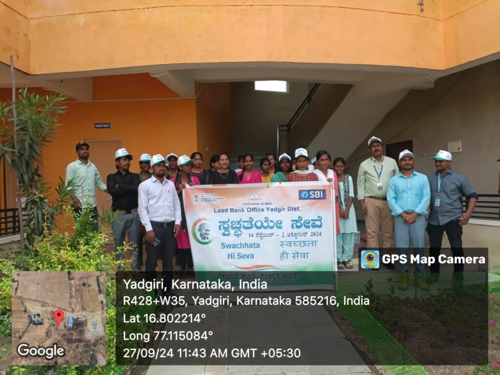 ಭಾರತೀಯ ಸ್ಟೇಟ್ ಬ್ಯಾಂಕ್ ಲೀಡ್ ಬ್ಯಾಂಕ್ ಮತ್ತು ಗ್ರಾಮೀಣಾಭಿವೃದ್ದಿ ಸ್ವಯಂ ಉದ್ಯೋಗ ತರಬೇತಿ ಕೇಂದ್ರ ಯಾದಗಿರಿ ವತಿಯಿಂದ ಸ್ವಚ್ಛತಾ ಹೀ ಸೇವಾ ಕಾರ್ಯಕ್ರಮವನ್ನು ಹಮ್ಮಿಕೈಗೊಳ್ಳಲಾಯಿತು.