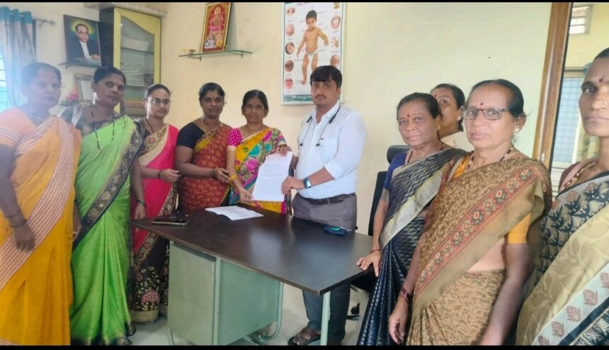 ಕಳೆದ ೪೯ ವರ್ಷಗಳಿಂದ ನಿಷ್ಠೆ ಹಾಗೂ ಪ್ರಮಾಣಿಕತೆಯಿಂದ ಸೇವೆ ಸಲ್ಲಿಸುತ್ತಿರುವ ಅಂಗನವಾಡಿ ಕಾರ್ಯಕರ್ತೆಯರನ್ನು ಹಾಗೂ ಸಹಾಯಕಿಯರನ್ನು ಖಾಯಂಗೊಳಿಸಬೇಕೆಂದು ಒತ್ತಾಯಿಸಿ ಅಂಗನವಾಡಿ ನೌಕರರ ಸಂಘ ತಾಲೂಕ ಸಮಿತಿ ವತಿಯಿಂದ ಶಿಶು ಅಭಿವೃದ್ಧಿ ಯೋಜನಾಧಿಕಾರಿ ಮಲ್ಲಣ್ಣ ದೇಸಾಯಿ ಅವರ ಮೂಲಕ ಭಾರತ ಸರ್ಕಾರದ ಮಹಿಳಾ ಮತ್ತು ಮಕ್ಕಳ ಕಲ್ಯಾಣ ಇಲಾಖೆ ಸಚಿವರಿಗೆ ಮನವಿ ಪತ್ರ ಸಲ್ಲಿಸಿದರು.