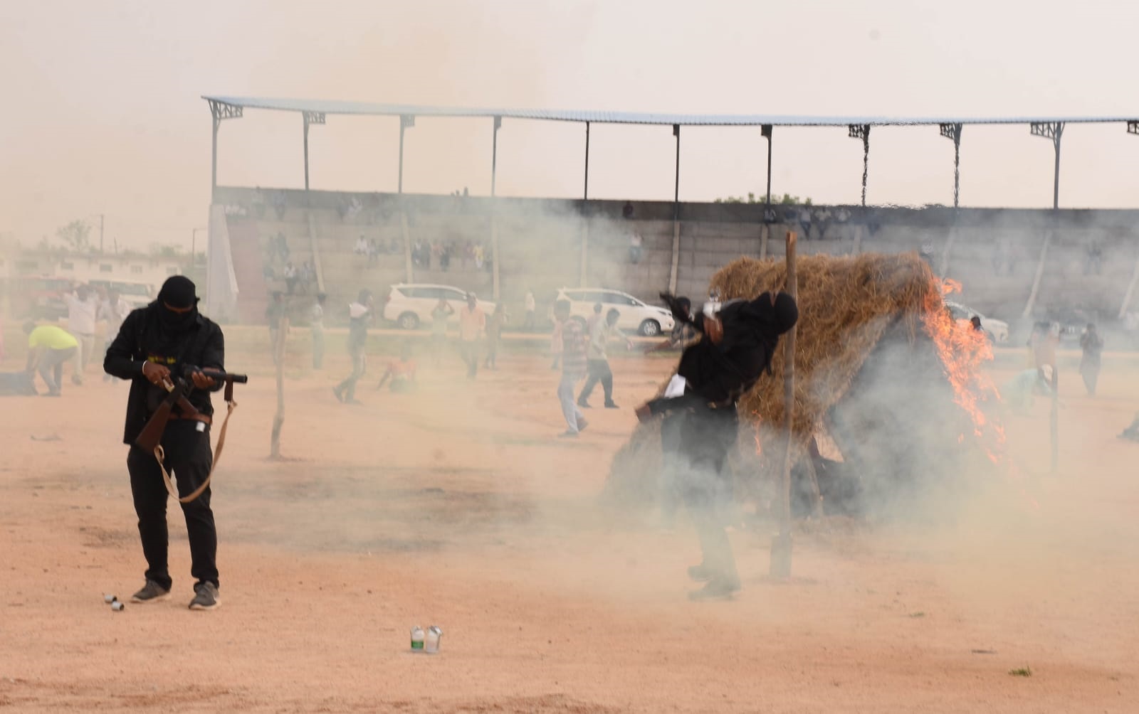 ನೂರಾರು ಪೊಲೀಸರು, ಪೊಲೀಸ್ ವಾಹನಗಳು ಮೈದಾನದಲ್ಲಿ ಜಮಾಗೊಂಡು ಜನರನ್ನು ಸುರಕ್ಷಿತ ಸ್ಥಳಗಳಿಗೆ ಕರೆದುಕೊಂಡು ಹೊದರು. ಮೈದಾನದಲ್ಲಿ ಅಸುನೀಗಿದ ರತ್ನಮ್ಮಳ ಸಂಬಂಧಿಕರ ಆಕ್ರಂದನ ಮುಗಿಲು ಮುಟ್ಟಿತು. ಯುವಕರು, ಮಕ್ಕಳು ಬಾಂಬ್ ದಾಳಿಗೆ ದಿಕ್ಕೆಟ್ಟು ಓಡಿಹೋಗುವ ದೃಶ್ಯ ಸಾಮಾನ್ಯವಾಗಿತ್ತು. ಹೀಗೆ 40 ನಿಮಿಷಗಳ ಒಟ್ಟಾರೆ ಈ ಕಾರ್ಯಚರಣೆ ಅಣಕು ಪ್ರದರ್ಶನ ಆಕ್ರಮಣಕಾರರ ದಾಳಿ ಹೇಗಿರುತ್ತದೆ ಎಂಬುವುದನ್ನು ಕಟ್ಟಿಗೆ ಕಟ್ಟಿಗೆ ಕಟ್ಟಿದಂತೆಯೇ ಪ್ರದರ್ಶನ ಮಾಡುವ ಮೂಲಕ ನೋಡುಗರ ಮೈ ಜುಮ್ಮೆನ್ನುಸುವಂತೆಯೇ ನಡೆಯಿತು.