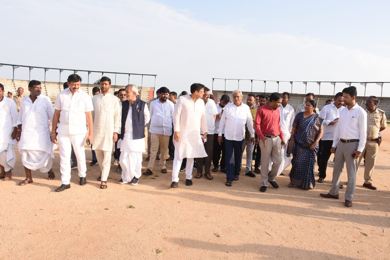 ಯಾದಗಿರಿ : ಮಾನ್ಯ ಮುಖ್ಯಮಂತ್ರಿಗಳು ಇದೇ ಜೂನ್ 14 ಕ್ಕೆ ಯಾದಗಿರಿಗೆ ಭೇಟಿ ನೀಡುವ ಪ್ರಯುಕ್ತ ಇಂದು ಸಣ್ಣ ಕೈಗಾರಿಕೆ ಹಾಗೂ ಸಾರ್ವಜನಿಕ ಉದ್ದಿಮೆಗಳ ಖಾತೆ ಸಚಿವರು ಹಾಗೂ ಜಿಲ್ಲಾ ಉಸ್ತುವಾರಿ ಸಚಿವರು ಶ್ರೀ ಶರಣಬಸಪ್ಪ ದರ್ಶನಾಪುರ ಹಾಗೂ ಕಲ್ಯಾಣ ಕರ್ನಾಟಕ ಪ್ರದೇಶಾಭಿವೃದ್ದಿ ಮಂಡಳಿ ಅಧ್ಯಕ್ಷರಾದ ಶ್ರೀ ಅಜಯ್ ಧರ್ಮಸಿಂಗ್ ಅವರು ಕಾರ್ಯಕ್ರಮ ನಡೆಸಲು ಉದ್ದೇಶಿಸಲಾಗಿರುವ ಜಿಲ್ಲಾ. ಕ್ರೀಡಾಂಗಣದಲ್ಲಿ ಸ್ಥಳ ಪರಿಶೀಲನೆ ನಡೆಸಿದರು.
