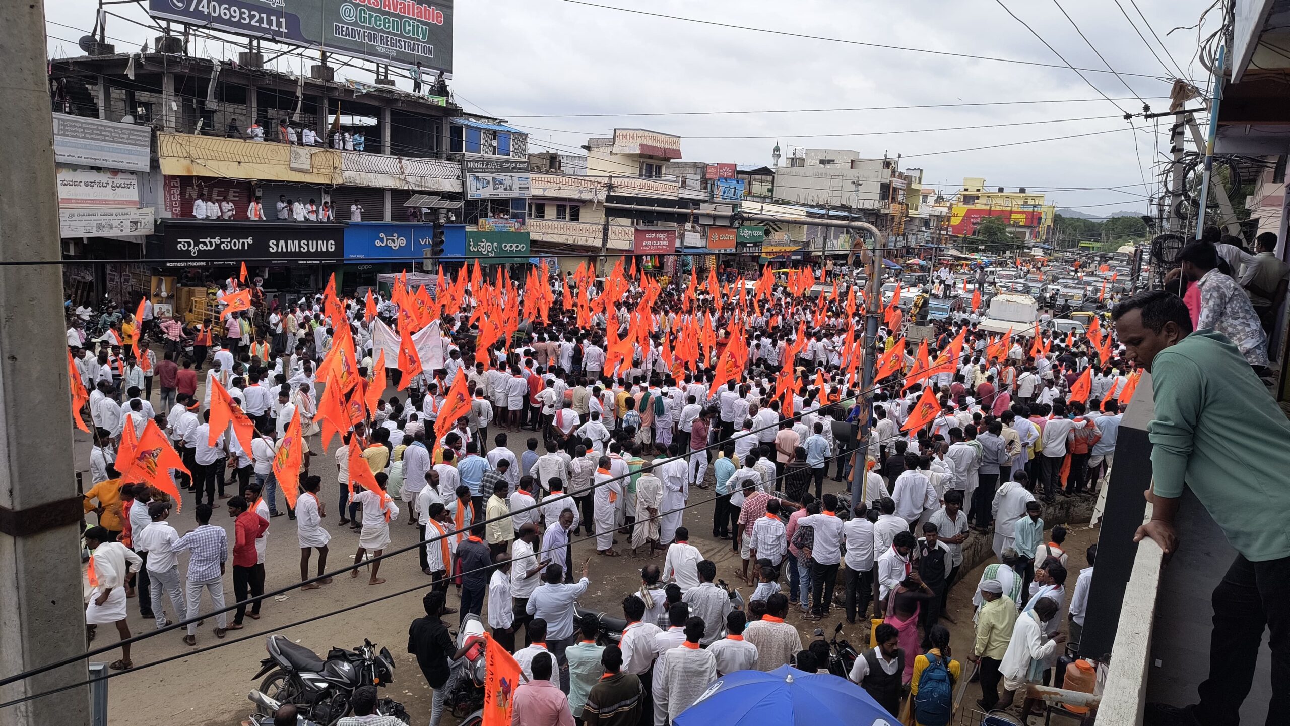 ವಾಲ್ಮೀಕಿ ನಾಯಕ ಸಮುದಾಯದ ಮುಖಂಡರು ಹಮ್ಮಿಕೊಂಡಿದ್ದ ಬೃಹತ್ ಪ್ರಮಾಣದ ಪ್ರತಿಭಟನಾ ಮೆರವಣಿಗೆ ಸಂದರ್ಭದಲ್ಲಿ ಧಾರಾಕಾರವಾಗಿ ಮಳೆ ಸುರಿಯುತ್ತಿತ್ತು ಇದರ ಮಧ್ಯೆಯೂ ಸಮುದಾಯದ ಶ್ರೀಗಳು ಹಾಗೂ ಹೋರಾಟಗಾರರು ಪ್ರತಿಭಟನೆ ಮೆರವಣಿಗೆ ನಡೆಸಿ ಗಮನ ಸೆಳೆದರು.