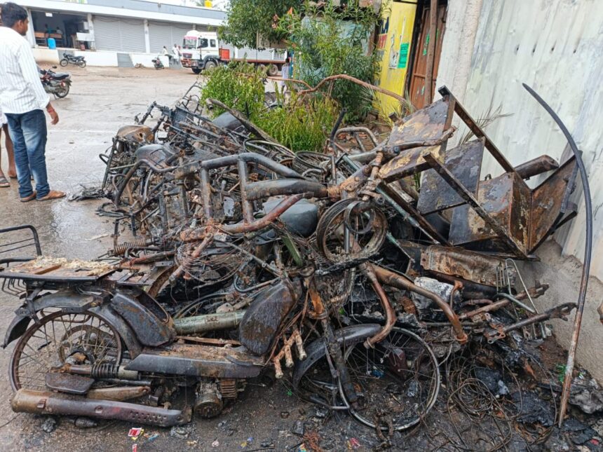 “ಕುಷ್ಟಗಿ | ವಿದ್ಯುತ್ ಶಾಟ್ ಸರ್ಕಿಟ್ : 15ಕ್ಕೂ ಹೆಚ್ಚು ಸುಟ್ಟು ಕರಕಲಾದ ದ್ವಿಚಕ್ರವಾಹನಗಳು”