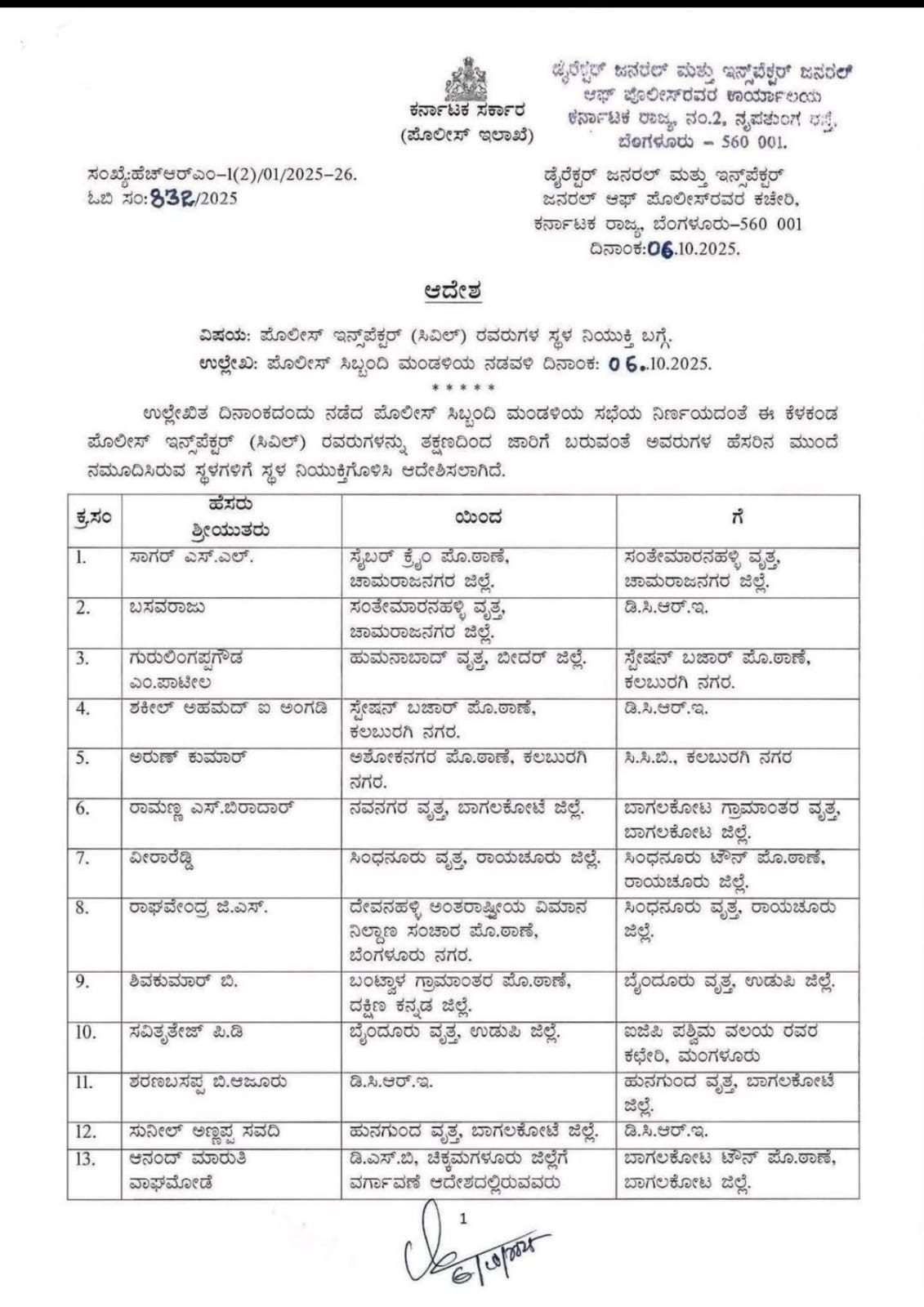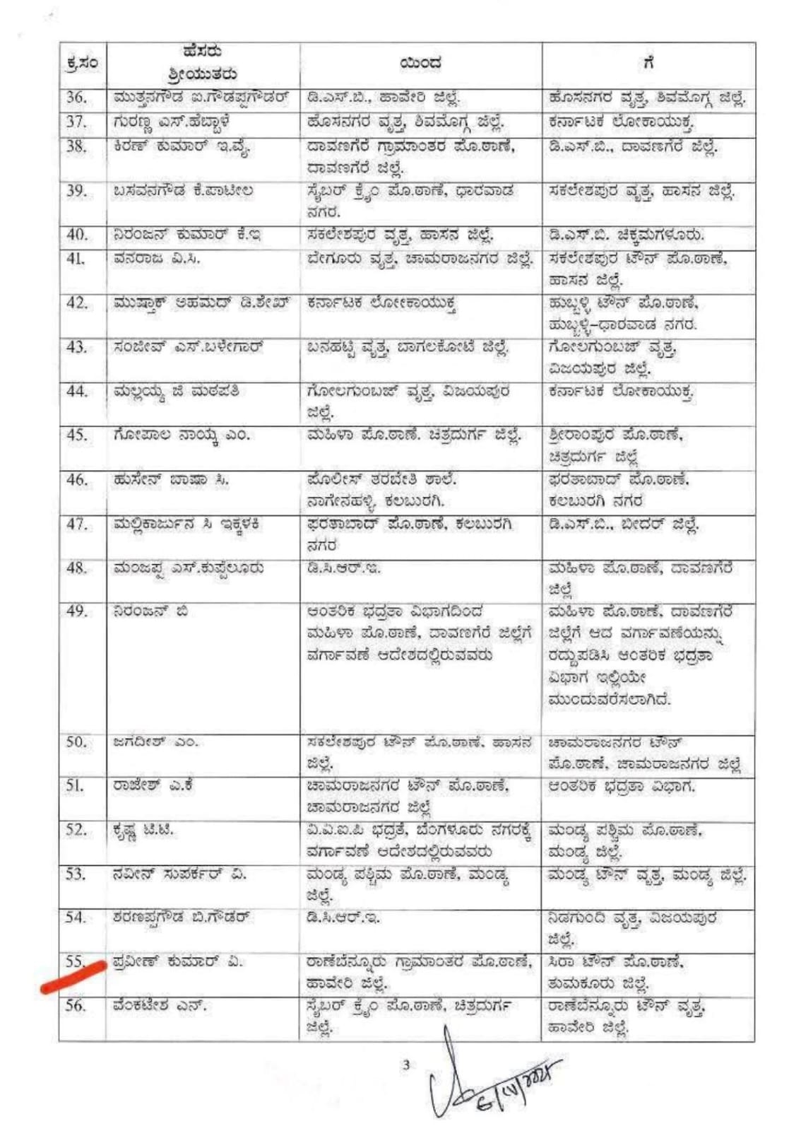 ವರ್ಗಾವಣೆಯಾದ 27 ಡಿವೈಎಸ್ಪಿ(ಸಿವಿಲ್)ಗಳ ಪೈಕಿ ನಾಲ್ವರನ್ನು ಹಾಗೂ 131 ಪೊಲೀಸ್ ಇನ್ಸ್ಪೆಕ್ಟರ್ ಗಳ ಪೈಕಿ 23 ಮಂದಿ ಇನ್ಸ್ಪೆಕ್ಟರ್ ಗಳನ್ನು ಲೋಕಾಯುಕ್ತ ಇಲಾಖೆಯಲ್ಲಿ ಕರ್ತವ್ಯ ನಿರ್ವಹಿಸಲು ಸ್ಥಳ ನಿಗದಿಪಡಿಸಲಾಗಿದೆ.