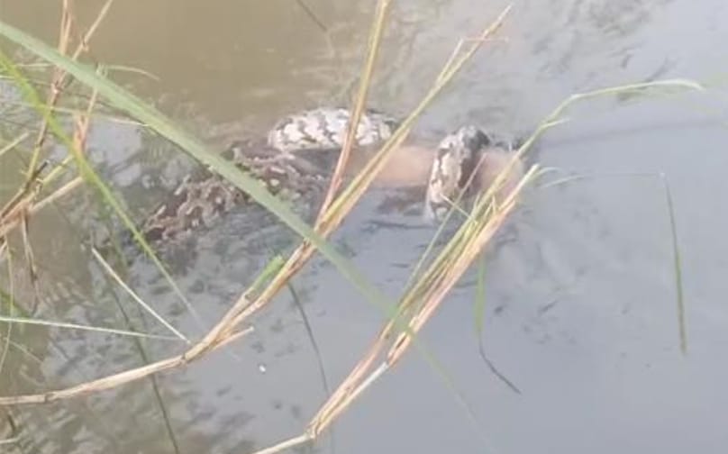 ದನಕರು-ಎಮ್ಮೆ ಮೈತೊಳೆಯಲು ಹೋದ ಯುವಕ ಮುದಿಯಪ್ಪ ಮೇಕಾಳಿ ಎನ್ನುವವನು ಹೆಬ್ಬಾವು ಕಂಡು ಆತಂಕಗೊಂಡಿದ್ದಾನೆ. ಮುದಿಯಪ್ಪ ತನ್ನ ಸ್ನೇಹಿತರನ್ನು ಕರೆದು ತೋರಿಸಿದಾಗ ಕೋತಿಯನ್ನು ತನ್ನ ದೇಹದಲ್ಲಿ ಹೆಬ್ಬಾವು ಬೀಗಿದು ಸುತ್ತಿಕೊಂಡಿದ್ದು ಉಸಿರಾಡಲು ಪರದಾಡುತ್ತಿದ್ದ ಕೋತಿಯು ಕೊನೆಗೂ ಪ್ರಾಣ ಹೋಯಿತು. ಈ ದೃಶ್ಯ ಸ್ಥಳೀಯ ಜನ ಮೊಬೈಲ್ನಲ್ಲಿ ಸೆರೆಹಿಡಿದು, ಆ ವಿಡಿಯೋ ಸಾಮಾಜಿಕ ಜಾಲತಾಣಗಳಲ್ಲಿ ವೈರಲ್ ಆಗಿದೆ.