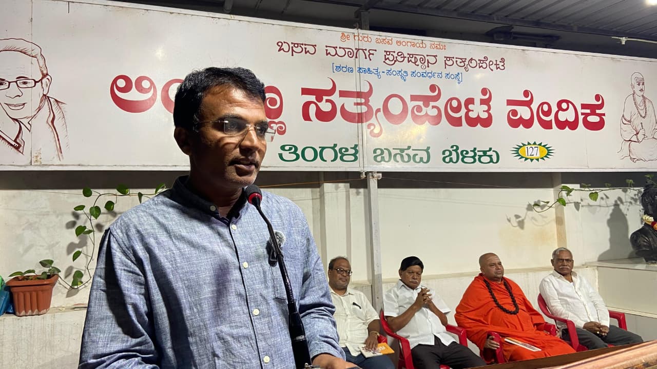 ಬಸವಮಾರ್ಗ ಪ್ರತಿಷ್ಠಾನ ಸತ್ಯಂಪೇಟೆ ಹಾಗೂ ತಾಲೂಕು ಜಾಗತಿಕ ಲಿಂಗಾಯತ ಮಹಾಸಭೆ ಆಯೋಜಿಸಿದ್ದ 127ನೇ ತಿಂಗಳ ಬಸವ ಬೆಳಕು ಕಾರ್ಯಕ್ರಮದಲ್ಲಿ ಶ್ರವಣ ಮತ್ತು ಸಿದ್ಧಾರೂಢ ಆನೇಗುಂದಿ ಅವರ ಸ್ಮರಣೆಯಲ್ಲಿ ನಡೆದ ಸಭೆಯಲ್ಲಿ ಅವರು ಮಾತನಾಡಿದರು.