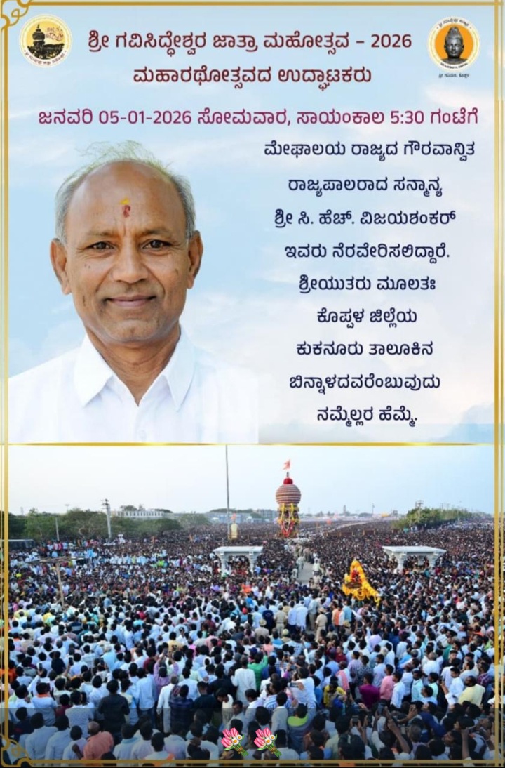 ದಕ್ಷಿಣ ಭಾರತದ ಕುಂಭಮೇಳ ಎಂದೇ ಪ್ರಸಿದ್ದಿ ಪಡೆದ ಇಲ್ಲಿನ ಗವಿಸಿದ್ದೇಶ್ವರ ಮಠದ ಜಾತ್ರೆಯ ಮಹಾರಥೋತ್ಸವ 2026ರ ಜನವರಿ 5ರಂದು ಸಂಜೆ 5.30ಕ್ಕೆ ಜರುಗಲಿದೆ. ಮಹಾರಥೋತ್ಸವಕ್ಕೆ ಮೇಘಾಲಯ ರಾಜ್ಯಪಾಲರಾದ ಸಿ.ಎಚ್. ವಿಜಯಶಂಕರ್ ಅವರು ಉದ್ಘಾಟನೆ ನೆರವೇರಿಸಲಿದ್ದಾರೆ ಎಂದು ಗವಿಮಠ ಪ್ರಕಟಣೆ ತಿಳಿಸಿದೆ.